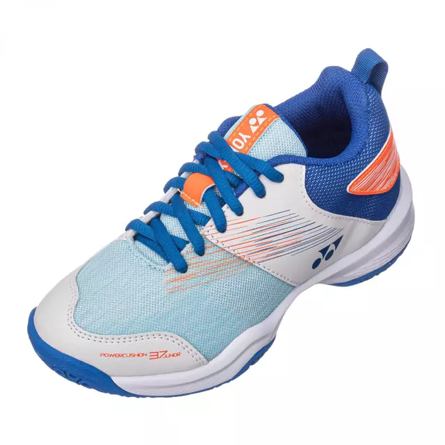 Modelo de entrada que proporciona un ajuste cómodo y suave. El YONEX Power Cushion absorbe los golpes y luego invierte la energía del impacto para una transferencia suave al siguiente movimiento. En comparación con el uretano, la construcción YONEX Power Cushion proporciona 3 veces más poder de absorción de impactos. Cuando se deja caer desde 7 m por encima de una sábana Power Cushion, un huevo rebota 4 m sin dañarse. Color : Blanco/ Azul Material : POWER CUSHION Malla Doble Raschel Durable Skin Light